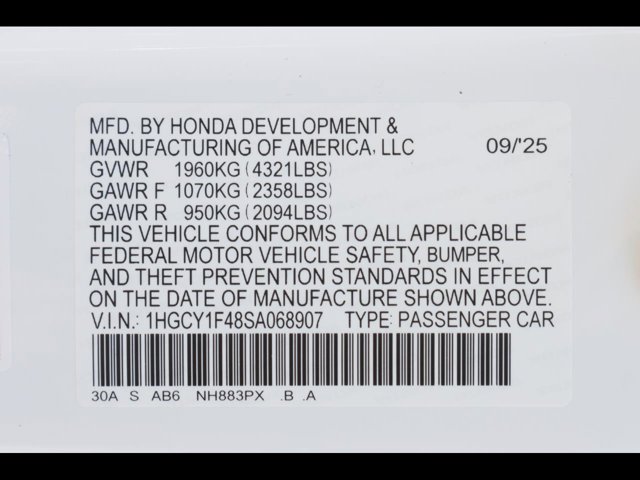 - VIN : 1HGCY1F48SA068907