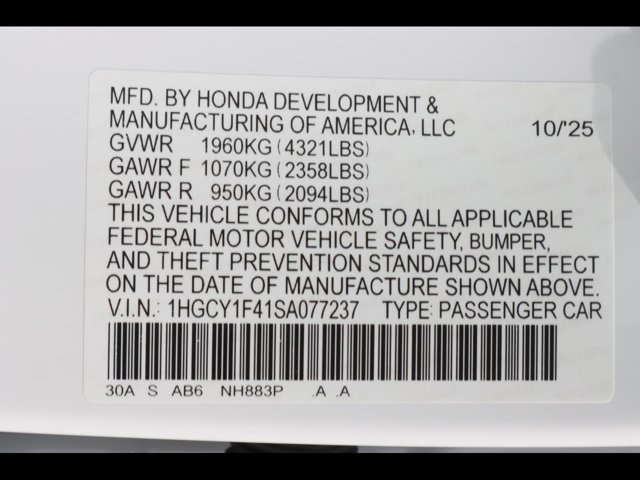 - VIN : 1HGCY1F41SA077237