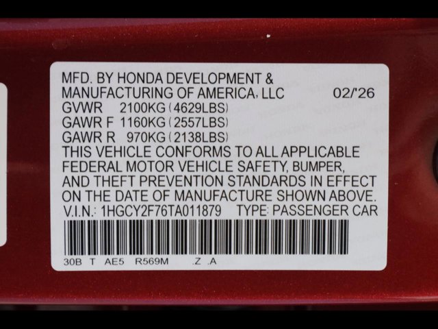 - VIN : 1HGCY2F76TA011879