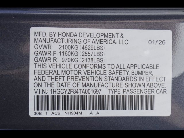 - VIN : 1HGCY2F84TA001697