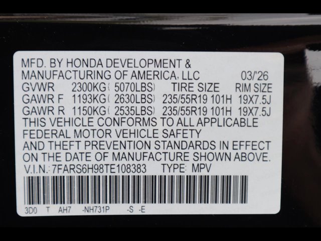 - VIN : 7FARS6H98TE108383