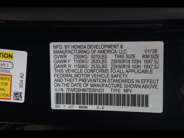 - VIN : 7FARS6H86TE091431