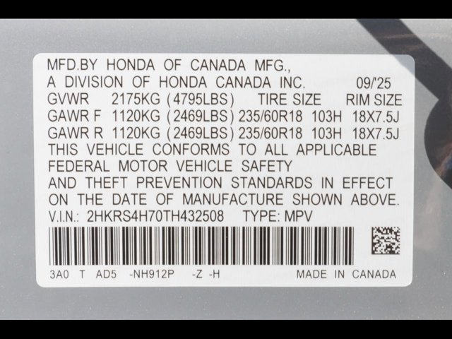 - VIN : 2HKRS4H70TH432508