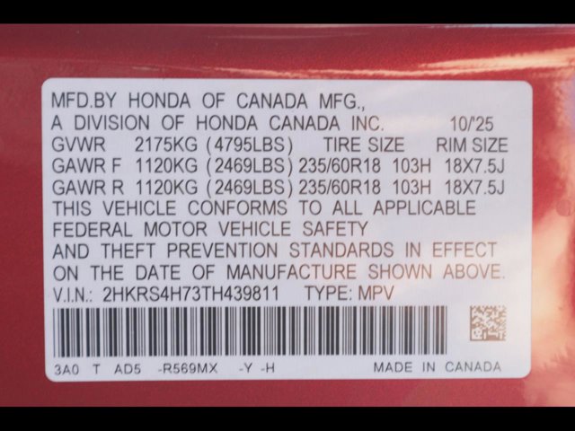 - VIN : 2HKRS4H73TH439811