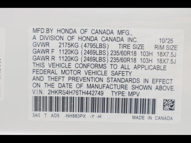 - VIN : 2HKRS4H76TH442749