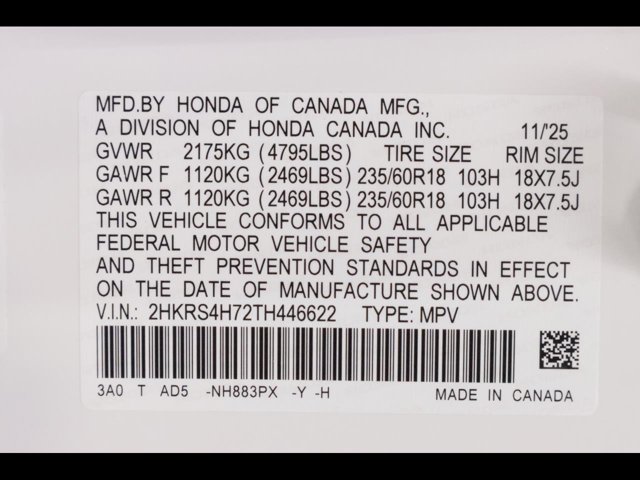 - VIN : 2HKRS4H72TH446622