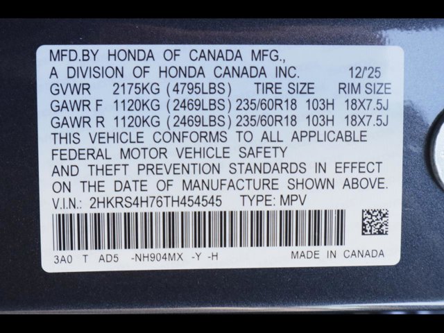 - VIN : 2HKRS4H76TH454545