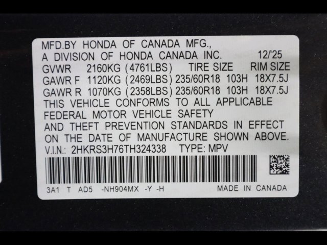 - VIN : 2HKRS3H76TH324338