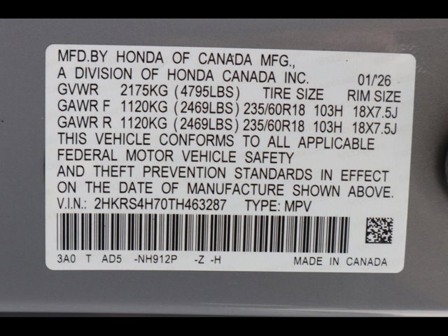 - VIN : 2HKRS4H70TH463287
