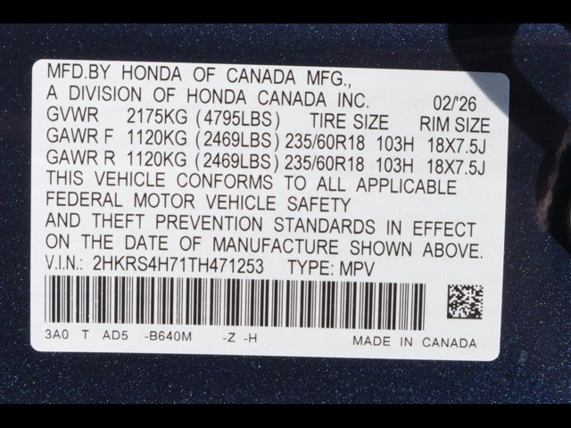 - VIN : 2HKRS4H71TH471253