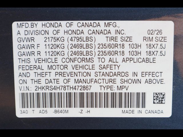 - VIN : 2HKRS4H78TH472867