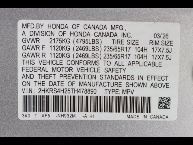 - VIN : 2HKRS4H25TH478890