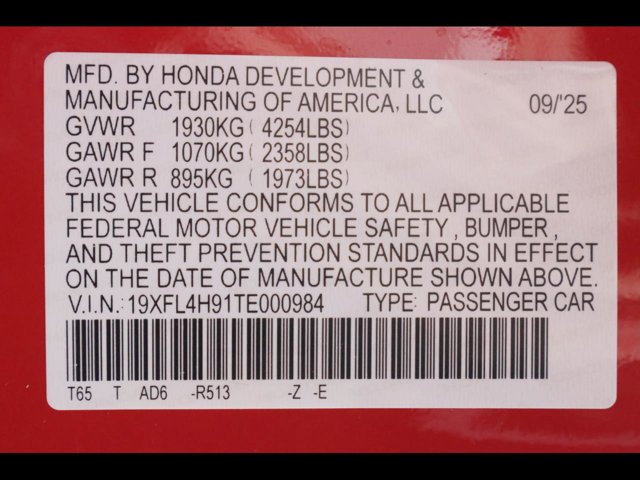 - VIN : 19XFL4H91TE000984