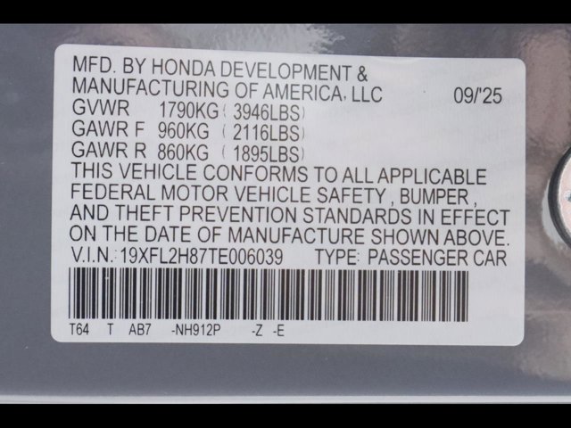 - VIN : 19XFL2H87TE006039
