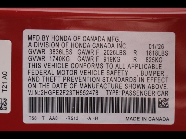 - VIN : 2HGFE2F23TH552478