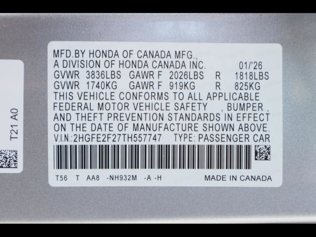 - VIN : 2HGFE2F27TH557747