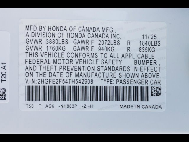 - VIN : 2HGFE2F54TH542908