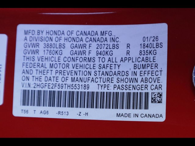 - VIN : 2HGFE2F59TH553189