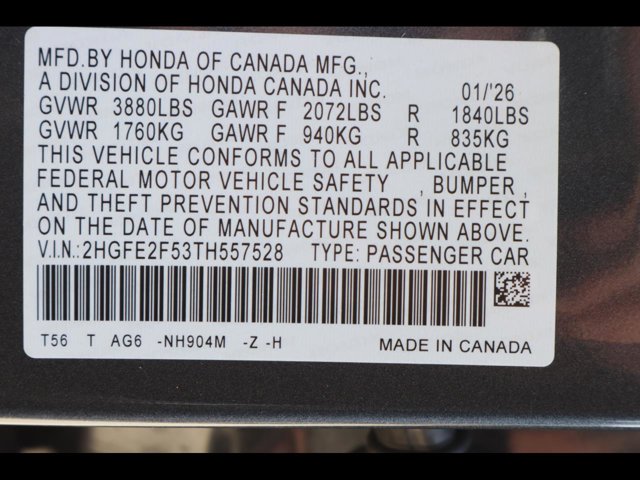 - VIN : 2HGFE2F53TH557528