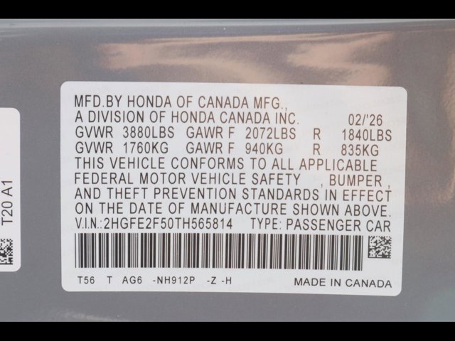 - VIN : 2HGFE2F50TH565814