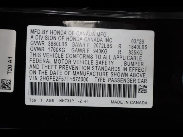 - VIN : 2HGFE2F57TH575000