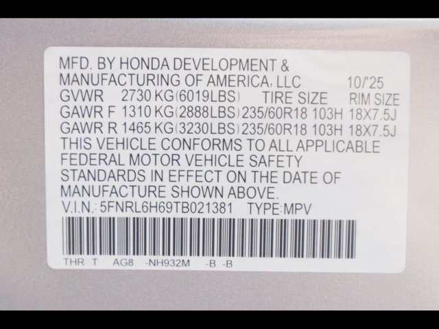- VIN : 5FNRL6H69TB021381