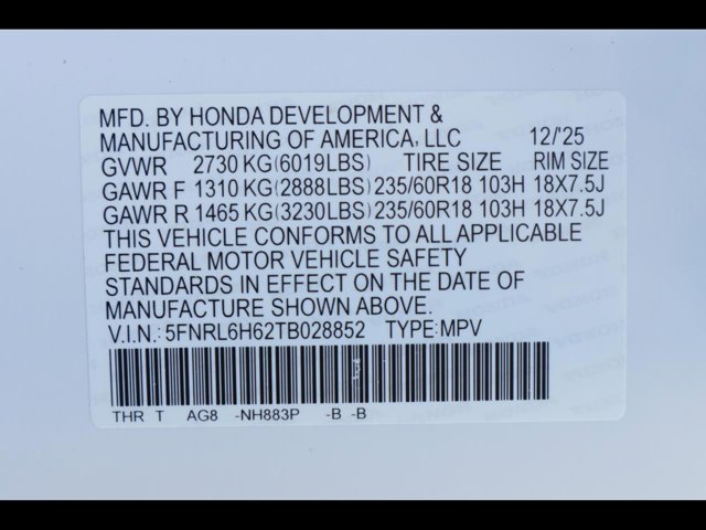 - VIN : 5FNRL6H62TB028852