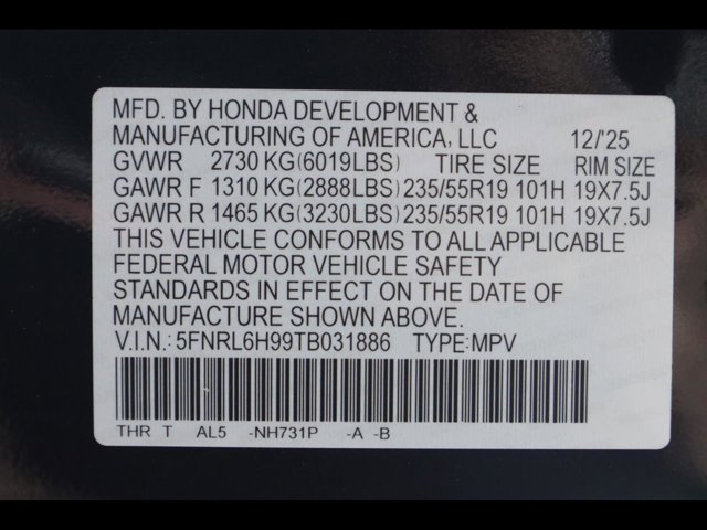 - VIN : 5FNRL6H99TB031886