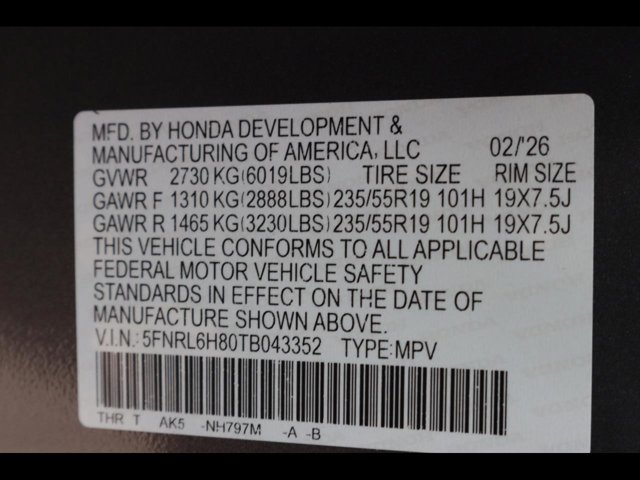 - VIN : 5FNRL6H80TB043352