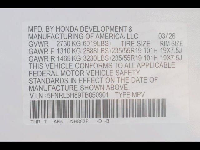- VIN : 5FNRL6H89TB050901