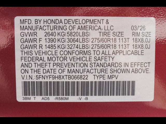 - VIN : 5FNYF9H8XTB066822