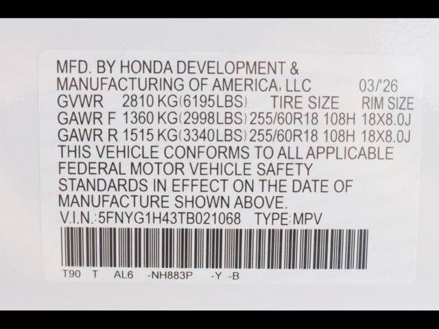 - VIN : 5FNYG1H43TB021068