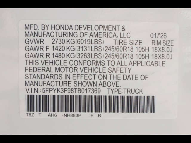 - VIN : 5FPYK3F98TB017369