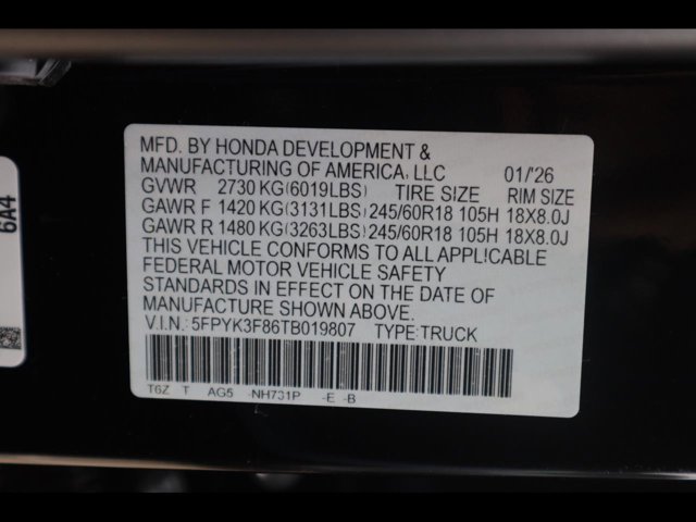 - VIN : 5FPYK3F86TB019807