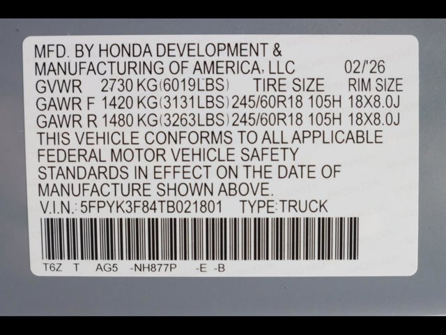 - VIN : 5FPYK3F84TB021801