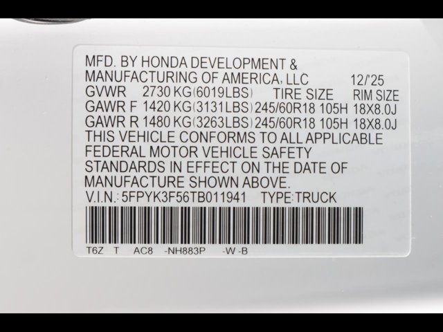 - VIN : 5FPYK3F56TB011941