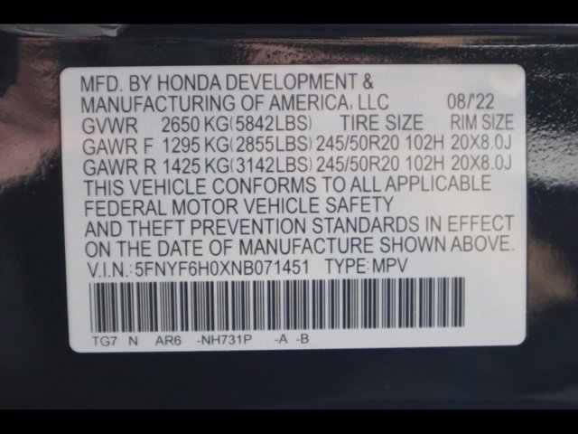 - VIN : 5FNYF6H0XNB071451