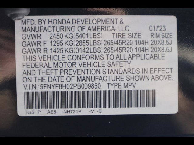 - VIN : 5FNYF8H02PB009850