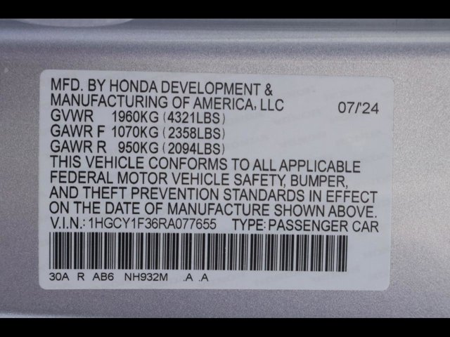 - VIN : 1HGCY1F36RA077655