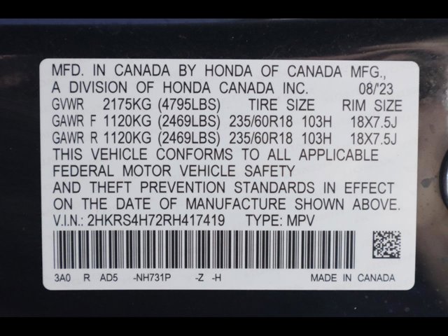 - VIN : 2HKRS4H72RH417419