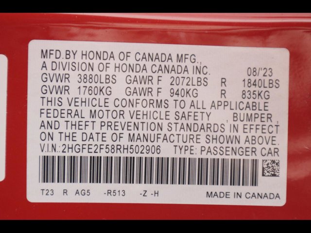 - VIN : 2HGFE2F58RH502906