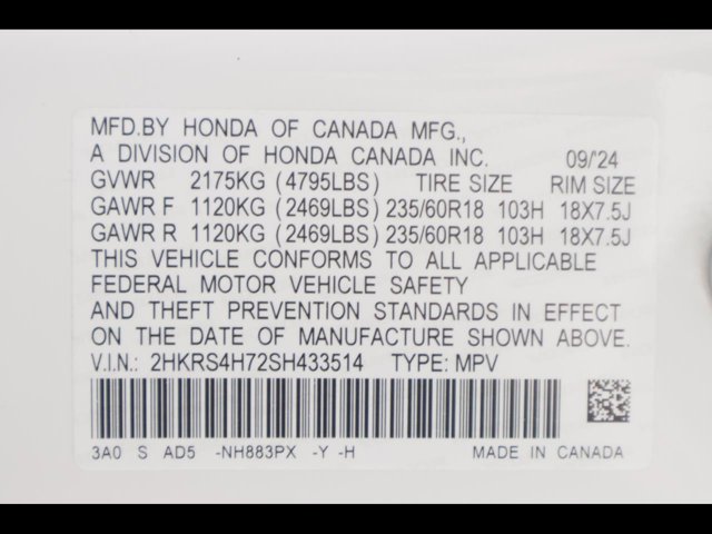 - VIN : 2HKRS4H72SH433514