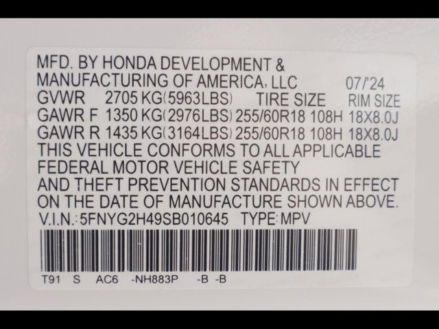 - VIN : 5FNYG2H49SB010645