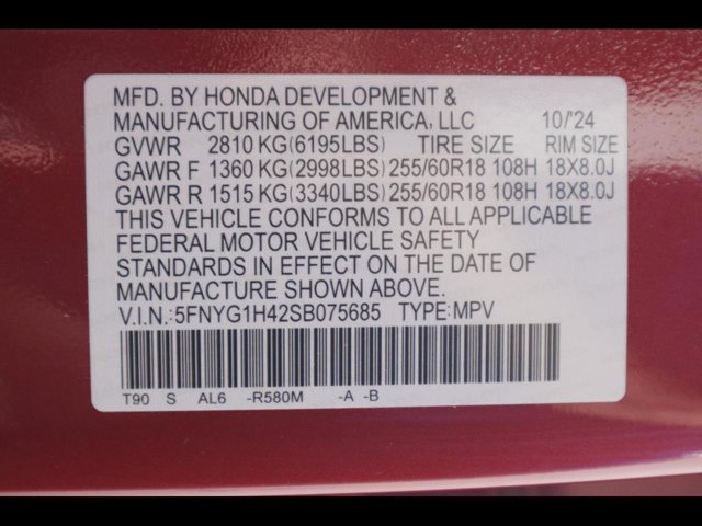 - VIN : 5FNYG1H42SB075685