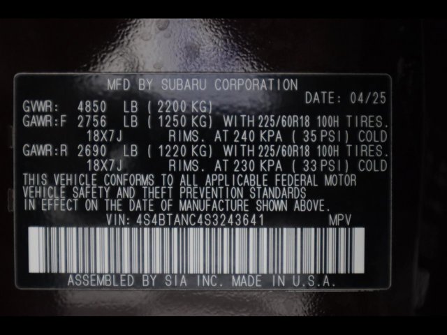 - VIN : 4S4BTANC4S3243641